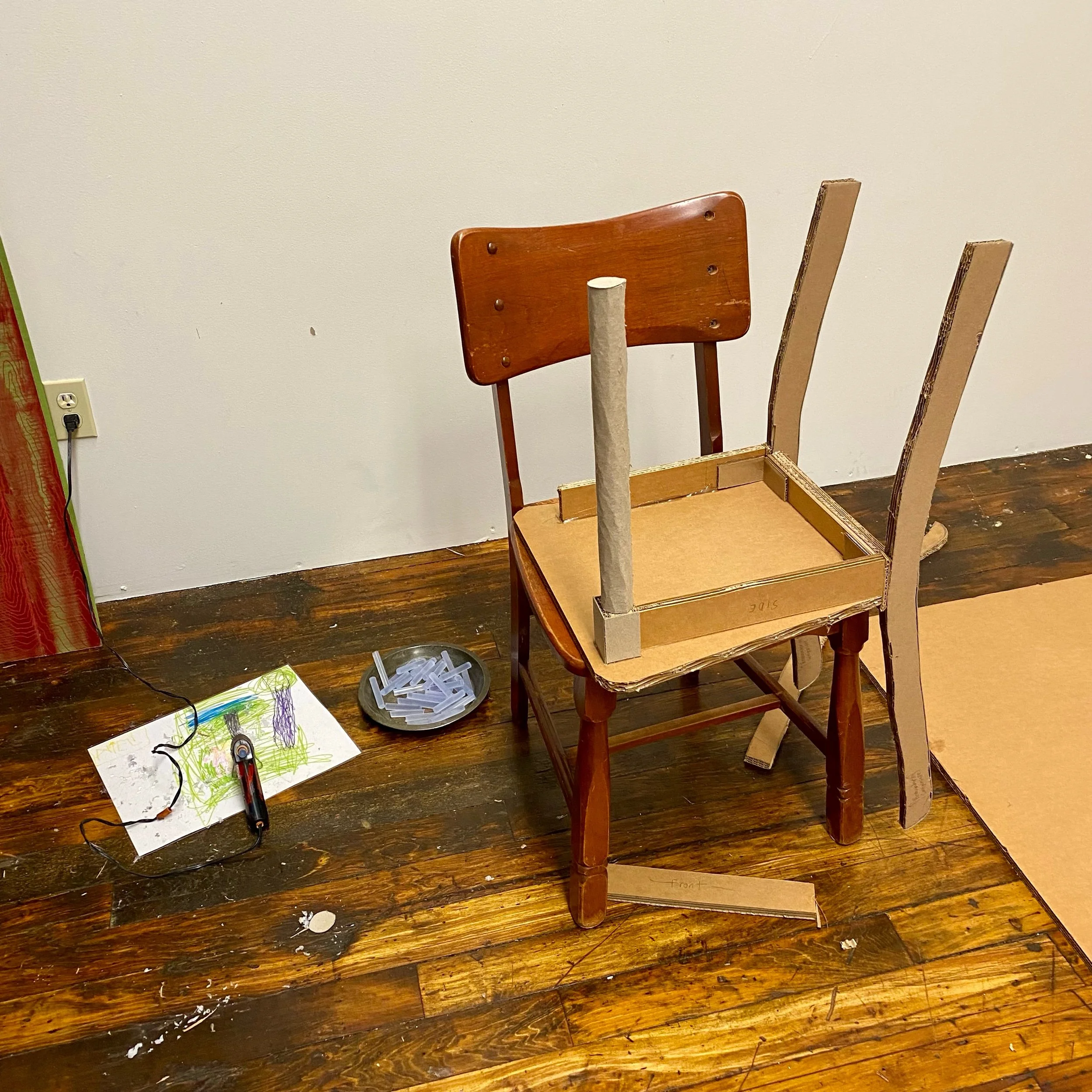 September 2024 working on Drew’s floor. Paint and acrylic pen on cardboard.
