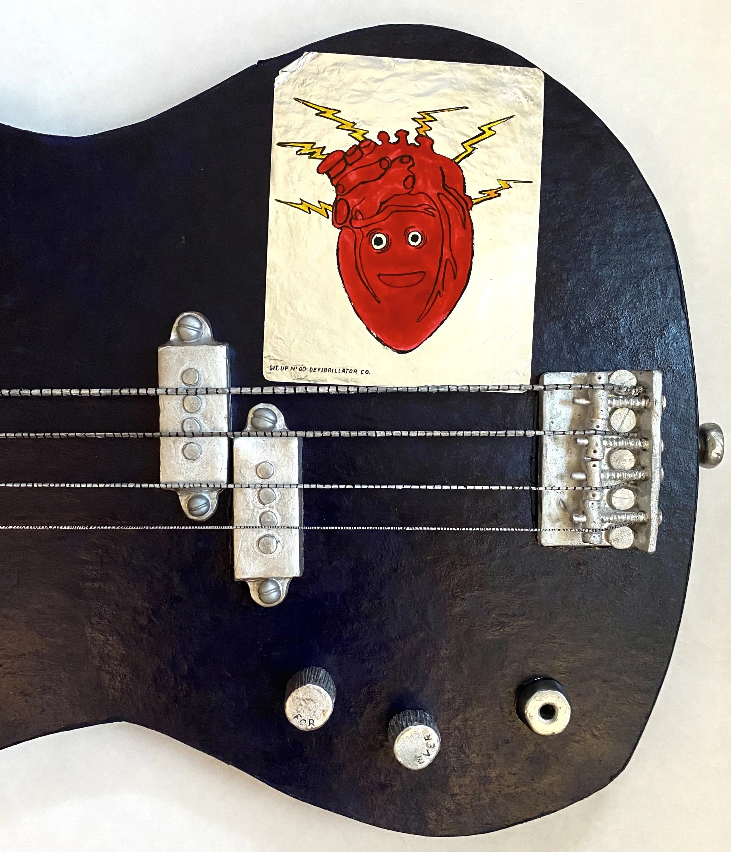 Bass: Acrylics, cardboard, ink, paint, paper, pins, polymer clay, string, PVA
